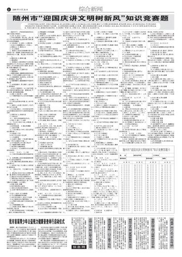 今年是新中国成立60周年,为普及文明礼仪知识,深入进行爱国主义教育,大力弘扬社会主义核心价值观,激发广大干部群众爱党爱国热情,倡导知荣辱、重礼仪、讲文明的良好风尚,市文明办和随州日报社联