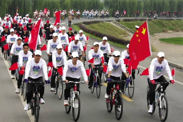 昨日,我市开展“一湖两岸”风光健身骑行活动,千名干部职工和热心市民积极参与,以此庆祝新中国成立60周年。