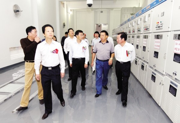 市长刘晓鸣,市领导何光中、谭志勇等参观神农变电站高压室