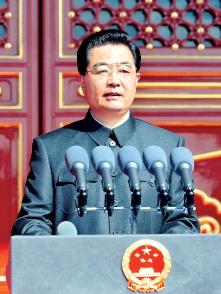胡锦涛在首都各界庆祝中华人民共和国成立60周年大会上发表重要讲话。 (新华社发)