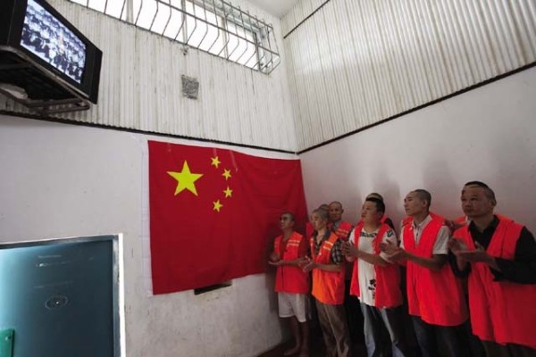 10月1日上午,随州市第一看守所组织40个监所400余在押人员,集体收看国庆六十周年首都阅兵大典电视直播,盛大的庆典极大地鼓舞了高墙内的人们(本报记者 白丁摄)