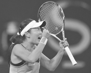 2009年中网公开赛7日晚进行女单1/8决赛的争夺,继在第二轮淘汰前NO.1扬科维奇后,彭帅又以6:2、6:4直落两盘战胜前世界第一俄罗斯美女莎拉波娃,强势挺进八强。值得一提的是,这是彭帅继07年中网后再现连胜前NO.1的壮举。