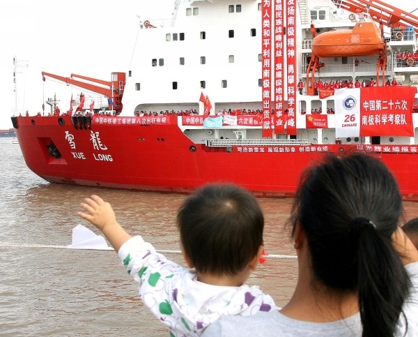 10月11日,“雪龙”号驶离位于上海浦东新区的中国极地考察专用码头。当日,中国第26次南极科学考察队乘坐“雪龙”号极地科学考察船,从上海启程奔赴南极。 (新华社发)