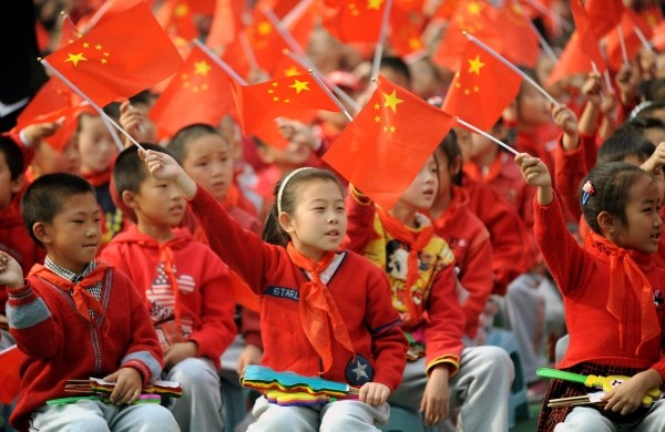 10月13日,少先队员在沈阳市举行的纪念中国少年先锋队建队60周年活动上舞动国旗。