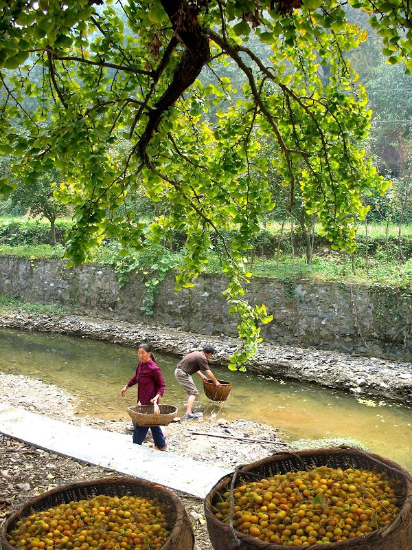 深秋时节,曾都区洛阳镇银杏谷的农民在小河边清洗白果,收获丰收的喜悦。据了解,该镇现有树龄百年以上的银杏树一万七千多株,年产银杏五百吨,年产银杏叶一千多吨。(本报记者 杨闻名 摄)