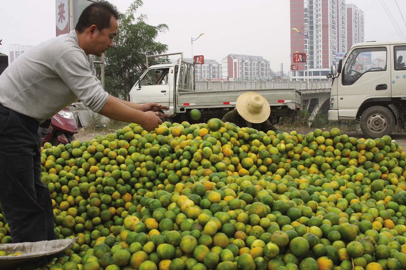 10月13日,随州城区二桥头,果商经营户正在出售从农民手中采购来的橘子。近几年,我市农村信用联社加大信贷力度,支持农民购买各种车辆,从事农副产品经营,有不少农民脱贫致富。 (本报记者 杨闻名摄)