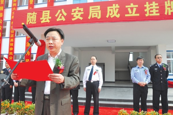 随县公安局自筹组以来,在警力少、任务重的情况下,全县公安民警以社会稳定为己任,认真履行公安机关的职责,圆满完成国庆安保等多项重大任务,成立处置、侦破多起复杂事、案件,为营造随县安定和谐的创业发展环境作出了巨大贡献,希望县公安局的同志们发扬成绩,再接再厉。“国家安危,公安系于一半”,公安建设关系到全县工作的全局,各部门要大力支持公安机关的工作,为公安机关的建设和执法开辟绿色通道,配合公安机关抓好防范、治理、打击、服务工作,营造随县良好的治安环境。