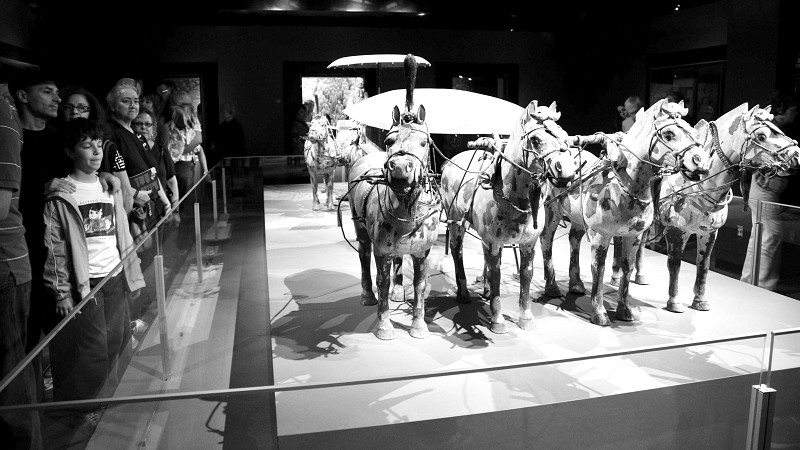 10月18日,在美国休斯敦自然科学博物馆,观众参观“中国第一个皇帝的卫队”——秦始皇兵马俑展。当日,历时5个月的秦始皇兵马俑展在这里落幕。展览接待观众多达20多万人次,成为该馆建馆以来最成功的单项展出之一。、