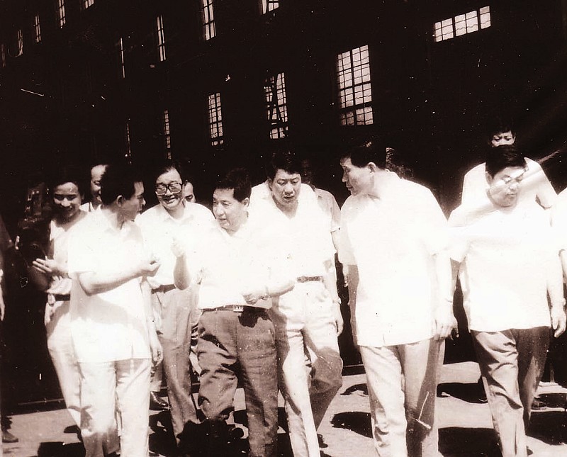 ▲1993年6月,时任湖北省委书记关广富(左三)来厂视察工作。