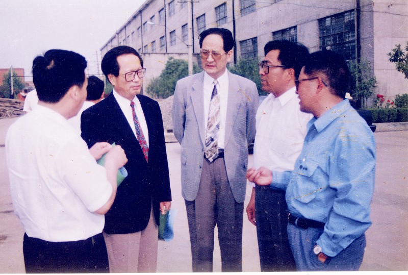 ▲1997年5月27日,时任湖北省委书记贾志杰(左二)、时任湖北省委副书记杨永良(左三)来厂视察工作。