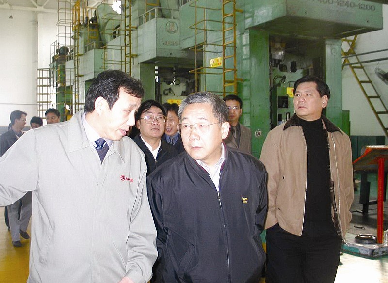 ◆2004年11月,时任湖北省委常委、常务副省长周坚卫(左二)在时任随州市委书记吴超陪同下来厂视察工作。