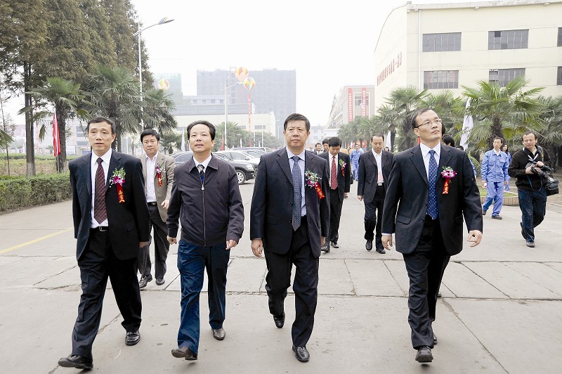 东风公司副总经理、东风有限副总裁、东风零部件事业部总经理欧阳洁(右二),市长刘晓鸣(左二)等领导视察东风随州车轮厂。