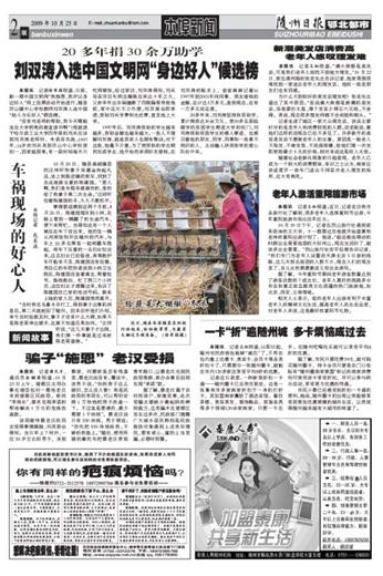 本报讯 记者徐军国报道:日前,新一期中国文明网“我推荐、我评议身边好人”网上投票活动开始进行,随县厉山镇中心学校教师刘双涛入选中国“助人为乐好人”候选榜。 “没有刘老师的帮助,我今