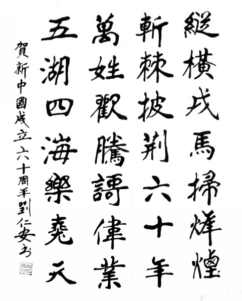 纵横戎马扫烽烟,斩棘披荆六十年。万姓欢腾歌伟业,五湖四海乐尧天。