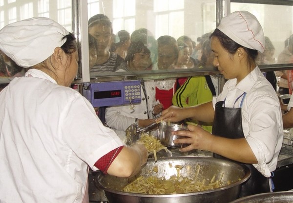 随州经济开发区淅河中心学校严把饮食卫生、校园安全关,以确保学生的健康成长。图为规范上岗的食堂工作人员正在为学生服务。 (本报记者 张 顺摄)