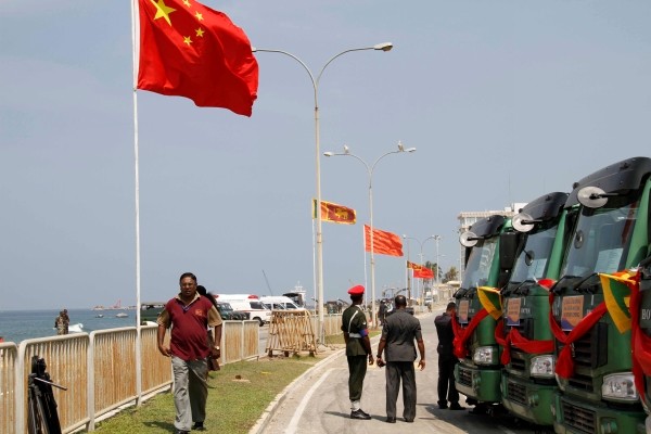 10月28日,在斯里兰卡首都科伦坡,一名斯里兰卡人从中国交付的车辆旁经过。当日,中国航空技术国际控股有限公司在这里向斯里兰卡政府交付了257台大型设备,用于斯北部地区的重建项目。(新华社发)