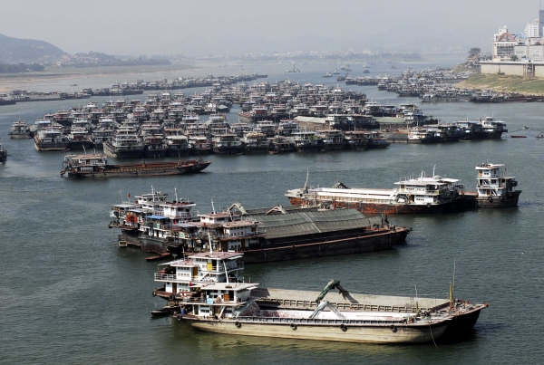 11月3日,等待通航的船只停泊在西江梧州段江面上。由于西江水位持续下降,截至11月3日上午8时,共有660艘船只滞留在广西梧州市西江航道。按目前的西江水位以及库区通行能力,坝下的船只得滞留3至4天才能通过长洲水利枢纽。目前,广西壮族自治区交通厅、梧州市已分别启动了应急响应。 (新华社发)