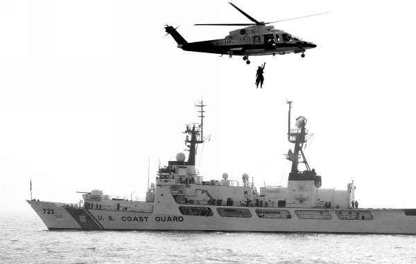 十一月五日,中国救助直升机将海上“落水人员”送往美国“急流”号执法船进行医疗救治。当日,来中国访问的美国海岸警卫队“急流”号执法船与中国交通运输部东海救助局在上海吴淞口水域举行海上联合搜救演练。(新华社发