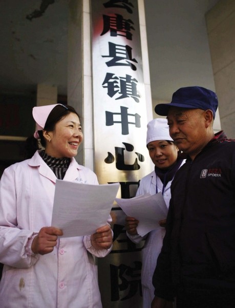 日前,随县唐县镇中心卫生院开展送医、送药、送健康活动。该院共向农村患者免费赠送了近2万元的药品,为近千名农民进行健康知识咨询。图为医务人员宣传农村常见病预防知识。