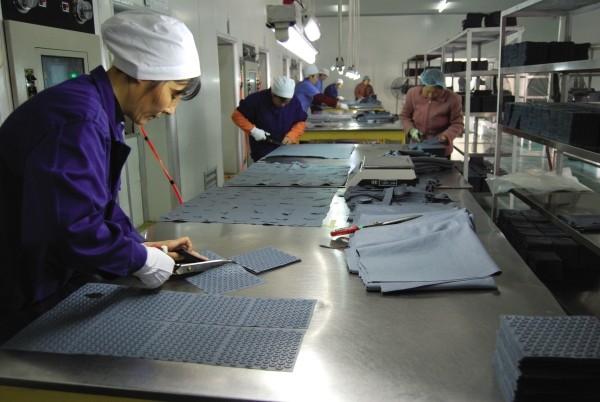 随州利康药业包装有限公司拥有国内最先进的生产设备和检测设备,主要生产药用铝塑组合盖、丁基胶塞与胶片等系列产品,年生产能力达50亿只。今年1至10月,该公司实现产值2000多万元。图为公司生产车间一角。