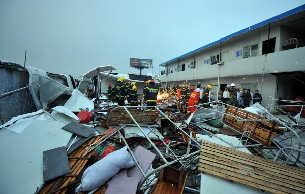 11月9日,搜救队员正在搜救被埋人员。当天,位于杭州城西的一幢二层简易工棚发生倒塌事故,救援人员救出了6名被埋人员,这6人的生命体征还比较稳定,没有生命危险。目前搜救工作已经结束。事故发生时杭州正遭到罕见的雷雨袭击,雨量极大,而宿舍内还有多名工人。简易工棚倒塌时房屋中有13名工人,其中7人自行逃离,6人被埋。目前事故原因仍在调查中。(新华社发)