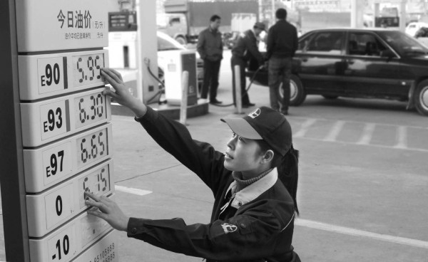 11月10日,我市各大加油站点,汽、柴油价格再次上调。据国家发改委、省物价局发出通知,当日凌晨起,90号、93号、97号汽油、0号柴油由原价5.55元、5.90元、6.25元、5.75元分别上调为5.95元、6.30元、6.65元、6.15元,每升均上调0.4元。 (本报记者 杨闻名摄)