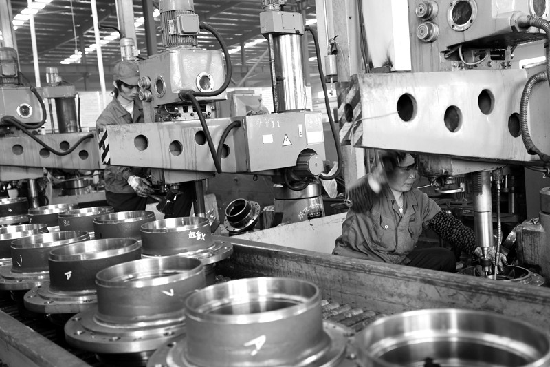 全力铸造生产的轮毂以过硬的质量,畅销国内市场。目前,该公司正科学调度,满负荷生产与济南重汽配套的斯太尔系列轮毂,日产高达1200件。 (本报记者 白 丁摄)