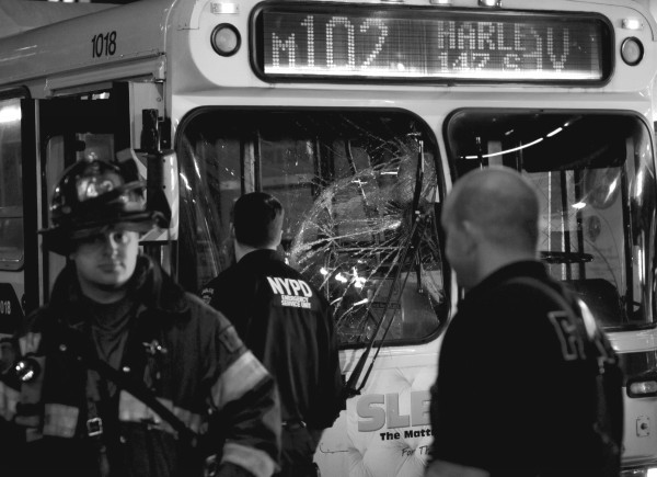 ·纽约曼哈顿公交巴士追尾