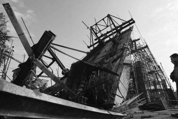 11月 14日,位于温州市鹿城区仰义乡前京村附近的温州绕城高速北线一座在建的高架桥发生坍塌,当场造成1人死亡、7人受伤。图为高架桥倾塌现场。新华社发