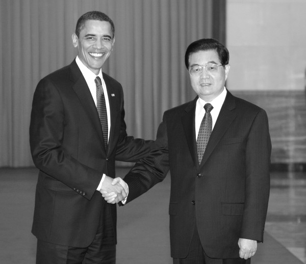11月17日,国家主席胡锦涛在北京人民大会堂主持仪式,欢迎美国总统奥巴马访华。 (新华社发)