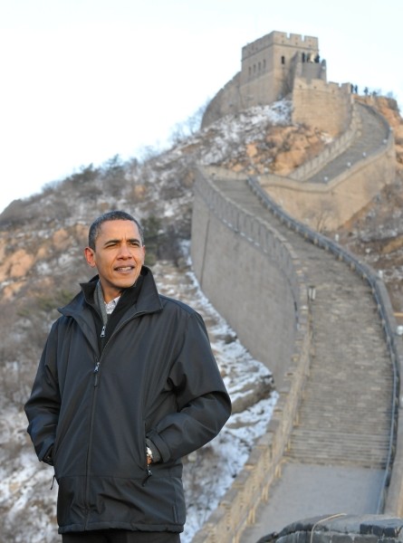 11月18日,美国总统奥巴马在北京游览八达岭长城。下午3点35分左右,美国总统奥巴马开始了他的长城之行。奥巴马一共登上了八达岭的三个烽火台,最远到达北三烽火台。穿着一身黑衣的奥巴马在登上长城后感慨:“长城太雄伟了,让我想起了悠久的中国历史。”最后,奥巴马独自一人从北一烽火台走下,他对记者说,他对中国之行感到非常满意,他很高兴能够来到长城,只是今天游览的时间有些短。 (新华社发)