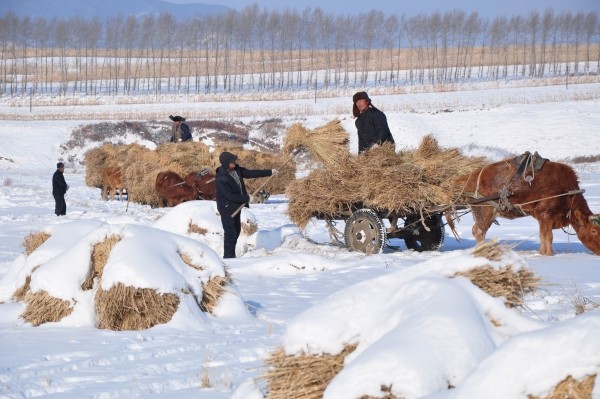 11月 19日,黑龙江林口县龙爪镇龙爪村农民在雪地里运水稻。黑龙江省林口县遭受罕见的暴雪袭击,导致当地12个乡镇不同程度受灾,其中龙爪镇约30%的水稻和玉米等粮食作物被大雪覆盖。目前,当地正全力组织清雪,打通运输通道,农民利用放晴的天气抢运粮食,减少灾害带来的损失。