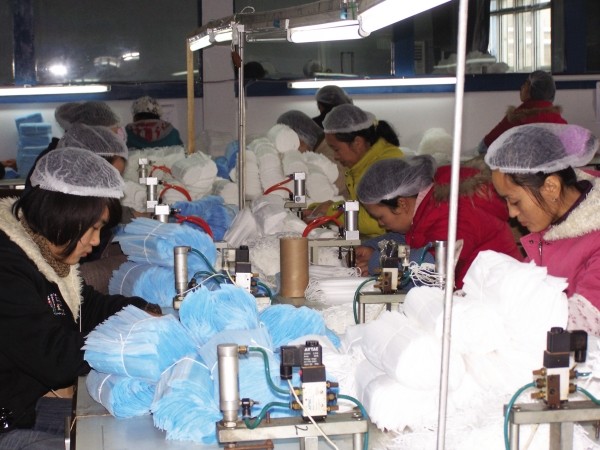 湖北华康无纺布防护品公司坚持科技兴企战略,今年前10个月创外汇100多万美元。近日,公司又与国外6家经销公司签订3000万只无菌口罩的合同,用于防控甲流感。 (本报记者 宋俊超摄)