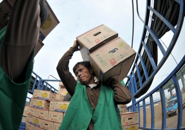 今年广西香蕉大幅增产,但受冰雪、寒潮等因素影响,香蕉销售遇到困难,运销阻塞,价格下跌,果农受损。十一月二十六日,南宁铁路局对运往新疆及东北三省的香蕉实行运价下浮20%,帮助果农销售香蕉。(新华社发)