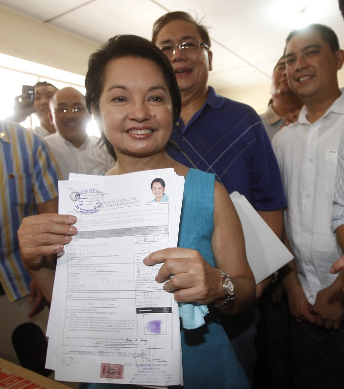 十二月一日,菲律宾总统阿罗约在其家乡宾邦板牙省递交参选国会众议员的注册表。阿罗约宣布,她将在2010年大选中参加国会众议院选举,希望在明年六月总统任期届满后能担任众议员,继续她的政治生涯。(新华社发)