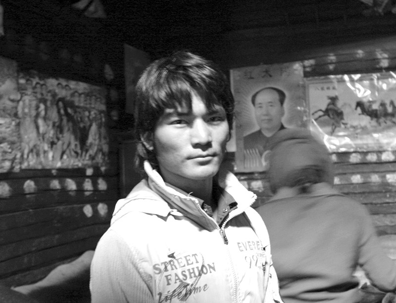 教室的墙上,张贴着成吉思汗的画像。降初拿出一本厚厚的书--《四川蒙古族》,讲起了他们民族的源流。他说,他们是蒙古族的一支,随蒙古大军到此。星转斗移,几百年过去,他们这个族群在大山里艰难地生存繁衍下来,保留下母系社会“走婚”等传统习俗,接受了藏传佛教的影响。与云南宁蒗县泸沽湖边的“摩梭族”是同一民族,有相同的语言、宗教信仰和生活习俗,他们说的“摩梭”实际是“蒙古”的不同读音……