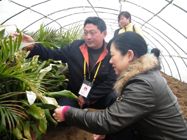 入冬以来,炎帝神农故里风景区积极准备第二届 (2010)世界华人炎帝故里寻根节,搭建了12个近2400平方米的塑料大棚,种植了美女樱、重辦金鸡菊、勋章花、飞燕草等30余个花草品种,为节庆的成功举办添彩。 图为景区园林技术人员正在观测大棚內花草的生长情况。 (通讯员 龚承斌、曹桂荣摄)