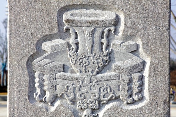 八根文化柱采用花岗岩制作,下方石雕为曾侯乙墓出土的国家级文物编钟、尊盘、鉴缶、大尊缶、联襟对壶、金碗及金杯、龙凤玉佩、磬架图案。