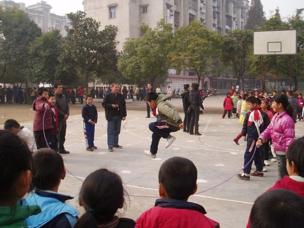 为了增强学生体质,大力推进阳光体育运动,曾都区北郊五眼桥小学近日成功地举办了2009年冬季运动会。图为适宜小学生特点的跳绳比赛。(邱学锋 陈晶晶 周军昌摄)