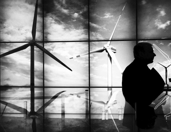 2009年4月20日,一名参观者在德国汉诺威工业展上参观风能技术展台。太阳能、风能等环保能源在本届汉诺威工业展上备受青睐。