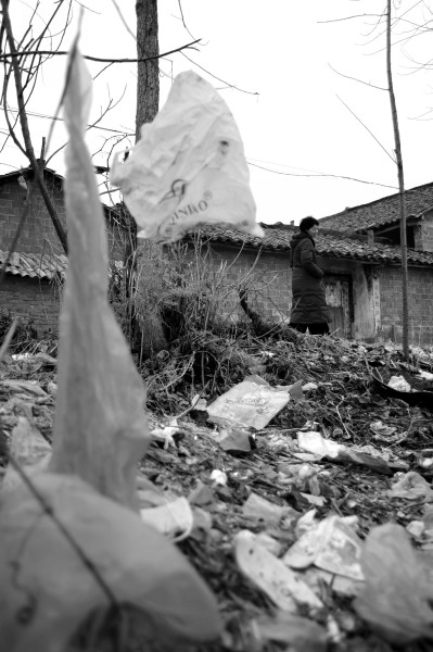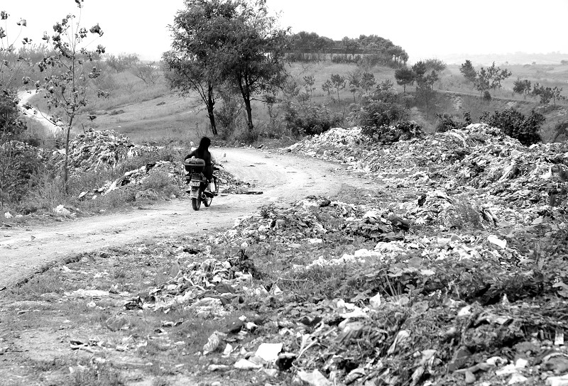 图1:一些村子被各种垃圾所包围,刮风的时候,各种颜色的塑料袋迎风起舞。