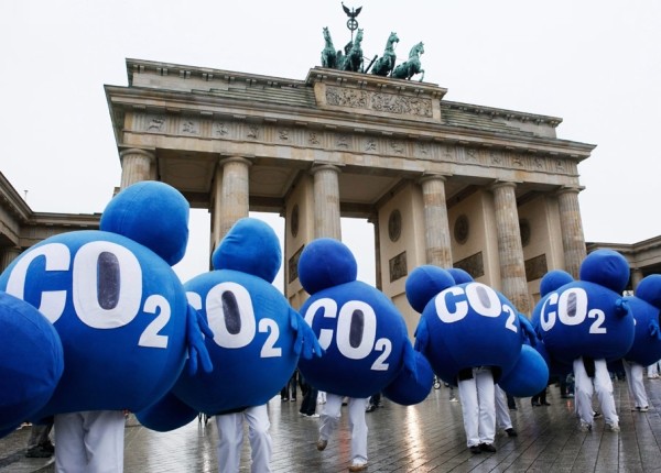 12月12日,世界各地的环保人士举行各种活动助威气候大会,呼吁环保。图为德国的环保人士在柏林举行活动,以此呼吁关注气候变化。