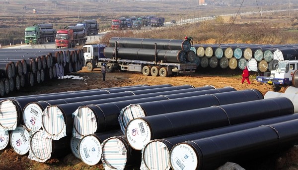 12月8日,中石油天然气华北石油工程建设公司将存放在曾都区南郊办事处邓家老湾的输气管道,运往西气东输二线工程施工现场。据介绍,目前施工方正加紧推进铺设管道工作,工程预计2011年3月竣工。 (本报记者 杨闻名摄)