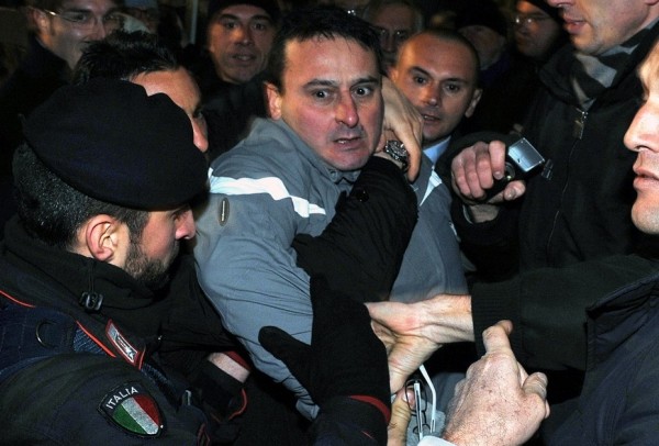 图2:袭击贝卢斯科尼的男子塔尔塔利亚(中)被安保人员制服