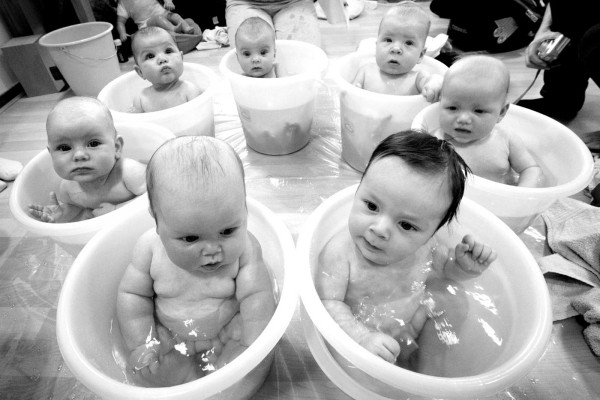 ② 3月24日,在荷兰西北部海港城市艾默伊登,7个小宝宝在浴盆里泡澡。