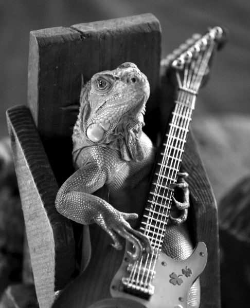 ④ 9月10日,在泰国曼谷,一只两岁的鬣蜥在训练师的训练下抱起一把吉他。