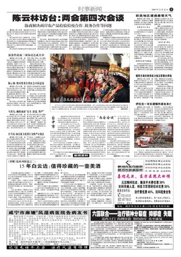 新华社12月21日电 海峡两岸关系协会会长陈云林率海协会协商代表团于21日中午抵达台中市,参加22日举行的第四次两会领导人会谈。 陈云林在举行仪式上致辞时说,历经北京、台北、南京三