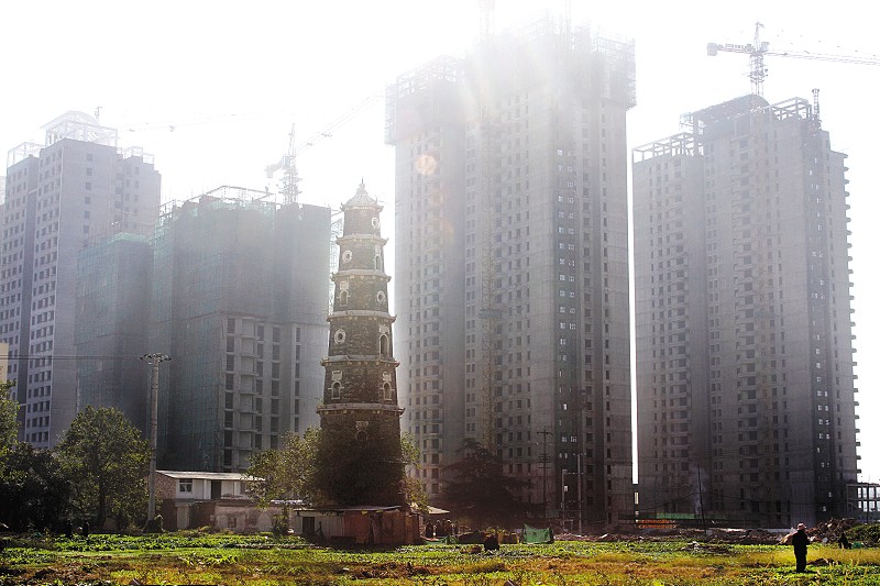 文峰塔塔身砖石结构,呈八面体,锥形,七层,七丈五尺高。塔周花纹精美,刻有建塔记事文:“环随皆山也,南有大洪山之拱峙,北有太白之盘纡,东有柱石之流丹,西有魁峰之耸翠,气佳哉,郁郁葱葱……”塔建成至今,保存完好,是我市一处难得的历史遗存。如今,这里高楼林立,随州城区正向现代化城市跃进。 (本报记者 杨闻名 通讯员 凤 鸣摄)