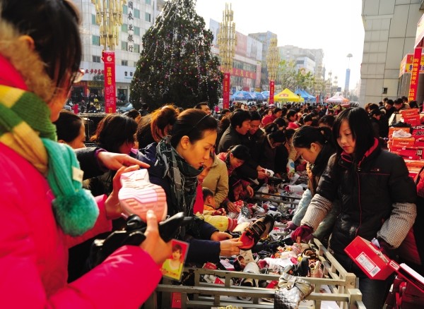 2009年1月至11月底,我市社会零售品消费总额达164.5亿元,比去年同期增长19.1%。图为12月20日,市民在解放路选购商品时的场景。 (本报记者 李文军摄)