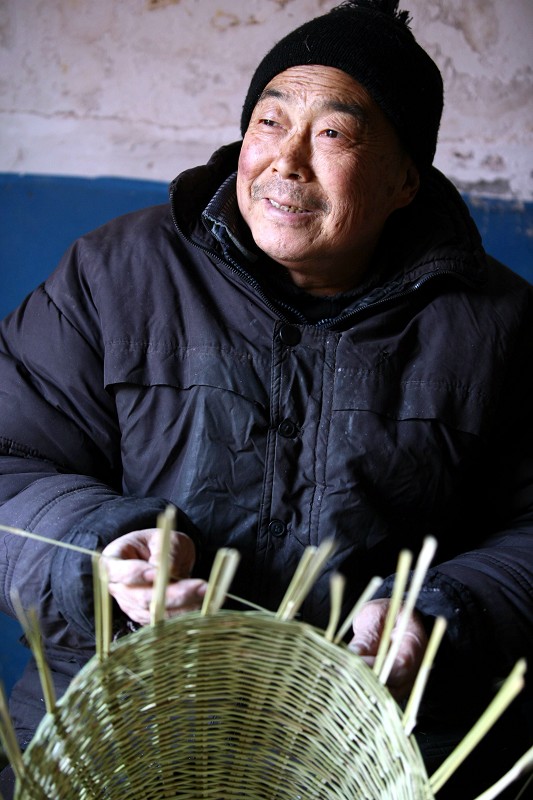 左图:生活在这里的老人用自己的双手养活自己,会编织手艺的老人们,编一个篮子可以卖11元,平均3个小时就可以编一个。